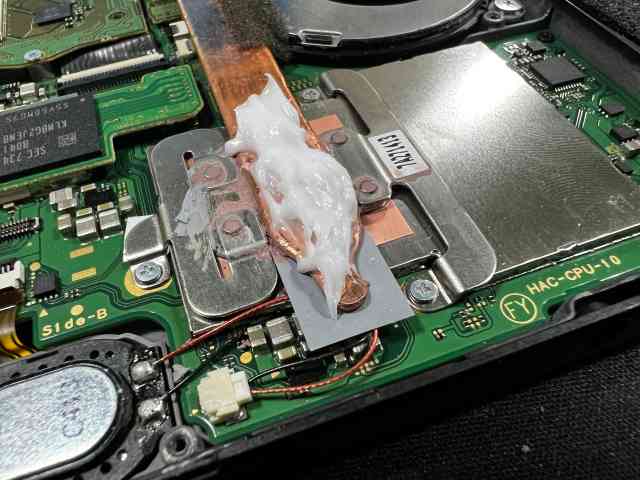 히트싱크 쪽은 써멀이 말라 있습니다. 그야 스위치 정발로 처음 나온 날 구입을 한 녀석이니 6년 정도 시간이 지난 것 같습니다. 전워부를 떼어내기 전에 전원부 안쪽을 한번 살펴보기로 합니다.