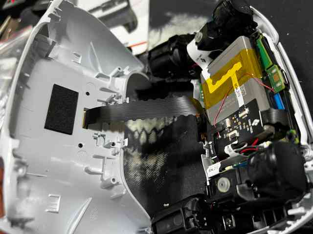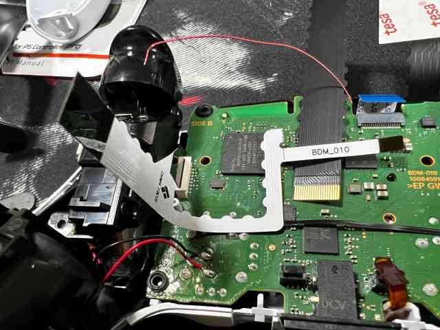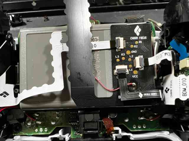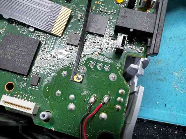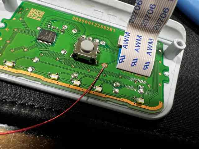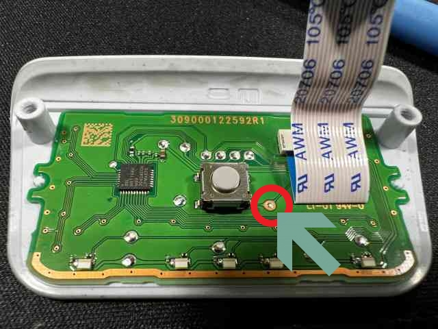 여기까지 분해한 이유는 저 빨간 동그라미안에 있는 납땜 포인트에 선을 연결해 주기 위해서 입니다. 고로 인두질을 한번은 해야 합니다. 기존에 필름과함께 들어있는 비닐봉투를 보면 선이 들어 있으니 그선으로 납땜을 해주시면 됩니다 .