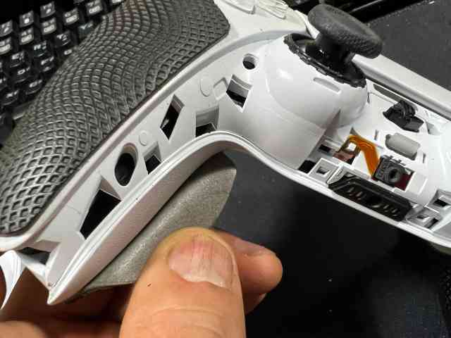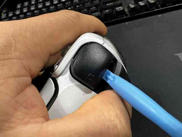 그다음 L1과 R1버튼을 분리해야 합니다. 역시 분해 도구로 저렇게 사이에 집어 넣어 준다음 지랫데처럼 눌러주면 버튼이 쉽게 분리 됩니다.