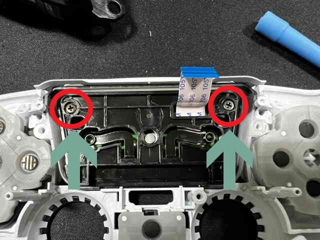 L1과 R1버튼을 모두 분리했으면 나사를 풀어주어야 하는데 위 사진의 좌 우 부분에 나사 하나씩 두개 풀어 주시고