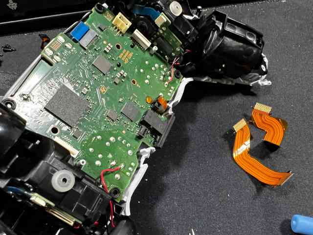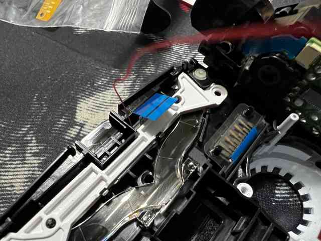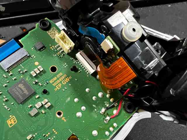 파란케이블까지 뽑았으면 기판을 살짝 들어올리면 기판이 빠집니다. 모터쪽에 선이 아직 납땜이 되어 있어 완전히 분리는 되지 않으니 이상태로 작업을 계속 합니다.