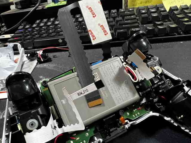 그리고 tesa라는 양면테이프의 햐얀 이면지를 뜯고 배터리에 자리를 잘 잡아서 붙입니다.