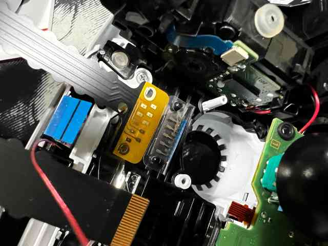 그리고 제가 제일 의심이 가는 부분입니다. 접지 사이에 저 필름을 끼워서 인식을 시켜야 하는데 웬지 이곳 말고는 딱히 의심할만한 곳이 없어서 바로 테스트해보았습니다. 우선 끼웠던 필름을 빼고 순정상태로 조립해서 PS버튼을 눌러 보았습니다. 역시 전원이 잘 켜집니다. 그럼 결론은 여기가 접점이 잘 안붙는단 소리인데 그러면 그부분을 더 눌러 줄만한 것을 찾아보는데 좀처럼 그런 부품이 보이지 않습니다. 스펀지 같은 부품이 있어야 하는데.... 어라 스펀지?